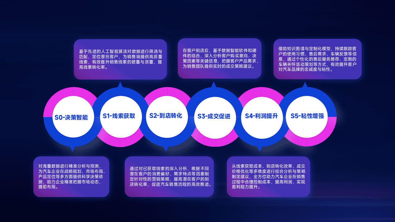 通过拓宽潜在客户来源、、优化线索分配并提高到店转化率,,,以增强销售效率。。同时,,利用线索数据不断优化分析模型,,,有效提升转化率,,,,扩大营销影响力。。